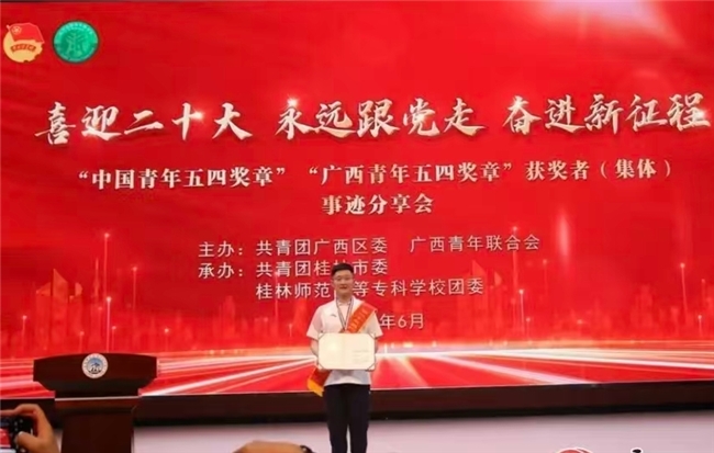 董佳乐获第二十五届“广西青年五四奖章”。